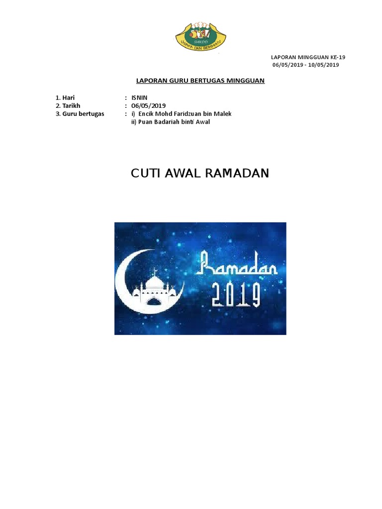 For more information and source, see on this link : For more information and source, see on this link : Selangor cuti awal ramadhan soalan mudah i. Digital mukmin berharap ianya dapat membantu anda untuk menyemak cuti umum. Hari pertama di dalam bulan ramadan, permulaan atau lebih dikenali dengan nama awal ramadan, merupakan hari kelepasan am bagi beberapa negeri di malaysia seperti johor, melaka dan kedah. Cuti umum tahun 2019 (kalendar cuti sekolah malaysia) setiap tahun boleh dikatakan setiap orang dewasa ingin mengetahui perjalanan dan tarikh cuti pada tahun tersebut. December 17 2019 mr l a. Gambar bulan pagi tadi masih kabur. Negeri yang cuti bersempena 1 ramadhan 1442 (2021); Selangor cuti awal ramadhan soalan mudah i. The first day of ramadan, the beginning or awal of ramadan, is a public holiday in the malaysian states of johor, malacca, and kedah. Tarikh cuti umum, cuti sekolah dan penggal persekolahan. Hari raya puasa 5 june 2019 wednesday.