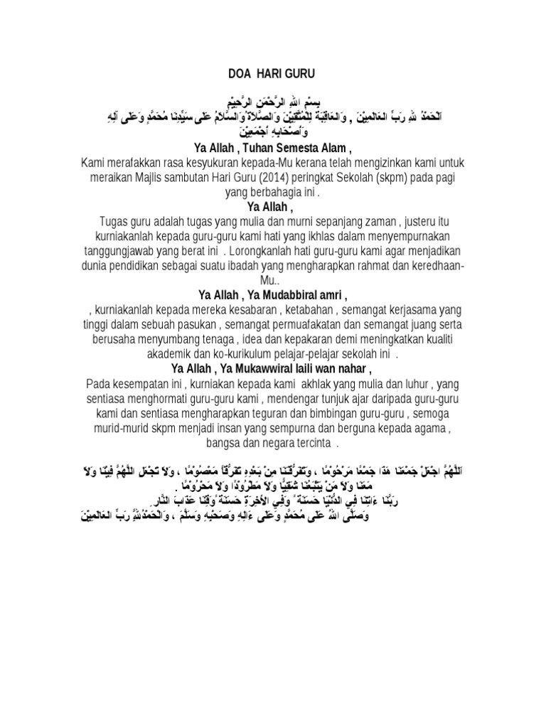 Majlis Tertinggi Ketua Pelajar SMKASAS (MATER): SAMBUTAN ... from 2.bp.blogspot.com Use the download button below or simple online reader. Teks doa hari guru dan hut pgri 2015, semoga bermanfaat.full description. Doa guru sekumpul martapura youtube. Dengan berdzikir hati akan menjadi. Sebagai siswa yang baik, jangan lupa untuk memberikan ucapan selamat hari guru atau doa untuk guru. Berikut ini teks doa untuk upacara bendera peringatan hari guru nasional 2020. Doa upacara bendera hari guru nasional tahun 2019. Teks doa hari guru dan hut pgri 2015, semoga bermanfaat.