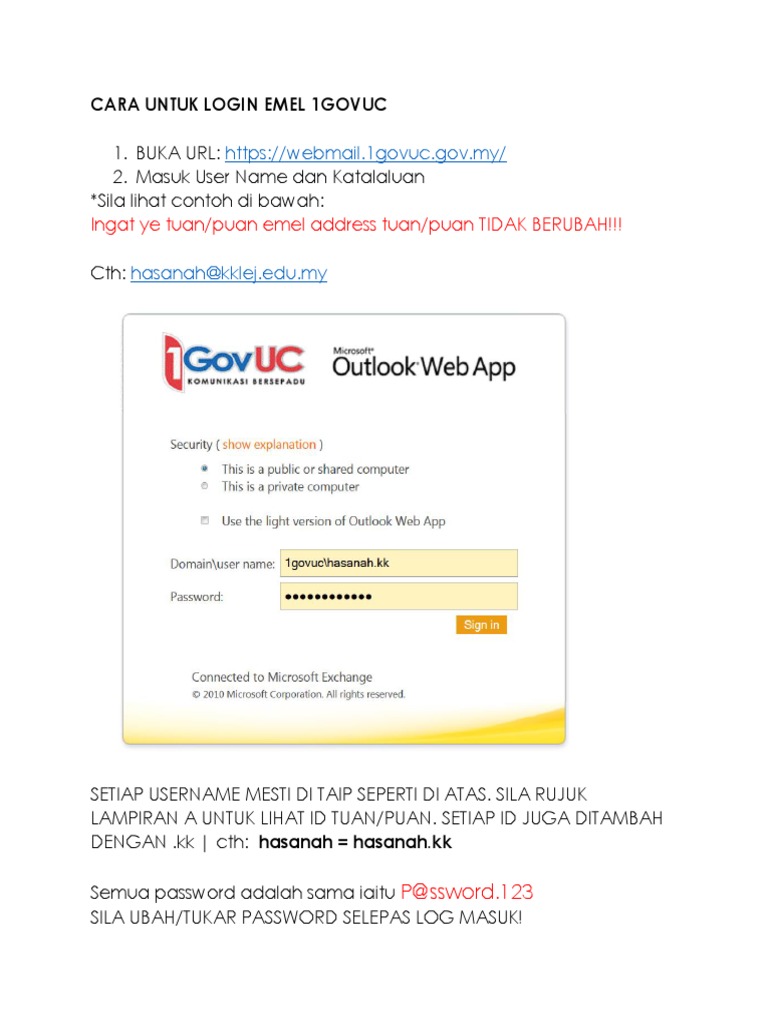 To set default to be your preferred client type, change the sign in options in your preferences, general tab after you sign in. * jika anda belum mempunyai akaun pw : 1govuc\noorshahida.moh) dan password (default password adalah email protected, user dikehendaki untuk menukar password setelah berjaya log in.) Kalau anda seorang kakitangan kerajaan, anda perlu log masuk untuk menggunakan email 1govuc. Kalau lupa password, contact admin. Layari laman web rasmi mygovuc komunikasi bersepadu di sini: Buka internet explorer, klik pada favourite > pilih 1govuc @ jika tiada pada favourite, taipkan url: Buka internet explorer, klik pada favourite > pilih 1govuc @ jika tiada pada favourite. dahulu webmail.1govuc.gov.my kini sso.mygovuc.gov.my. Untuk pengguna memasukkan maklumat berkenaan user name (con toh: Provides you access to email, calendar, and. Webmail 1govuc gov my outlook webmail 1 govuc gov. A web portal is a specially designed website that brings information from diverse sources, like emails, online forums and search engines, together in a uniform way.usually, each information source gets its dedicated area on the page for displaying information (a is 1govuc.gov.my not working or opening?